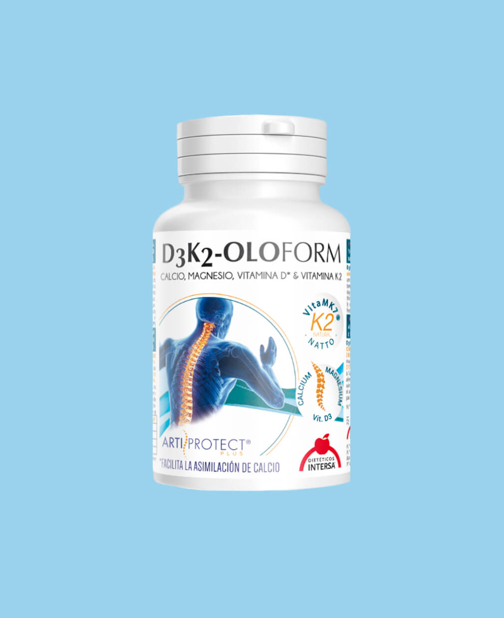 D3-K2-OLOFORM es una combinación de minerales y vitaminas que aportan nutrientes asimilables para el mantenimiento del sistema óseo y facilitan el movimiento articular.
