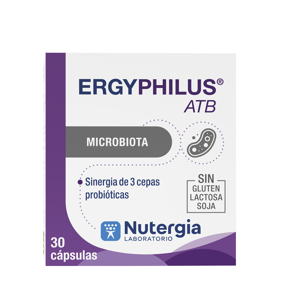 ERGYPHILUS® ATB es una sinergia única de 3 cepas de lactobacilos, capaces de inhibir rápidamente los patógenos implicados en las molestias gastrointestinales debidas a la toma de antibióticos.
