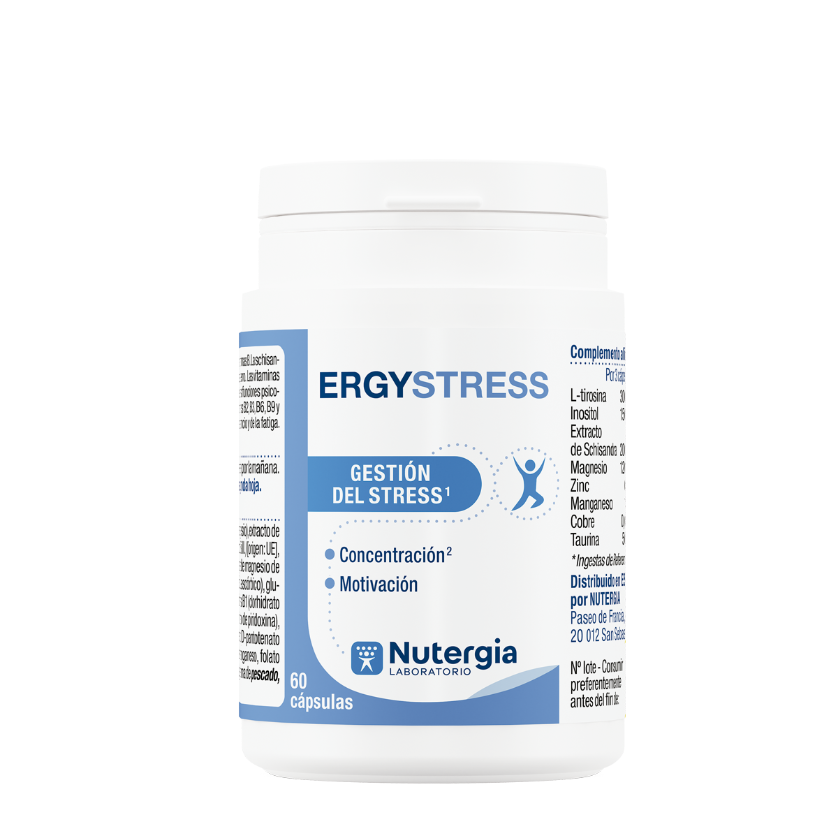 ERGYSTRESS es un complemento que combina micronutrientes como tirosina, taurina, inositol, magnesio, vitaminas del grupo B y C, junto con oligoelementos y Schisandra, una planta adaptógena reconocida por su capacidad para ayudar al cuerpo a adaptarse al estrés.