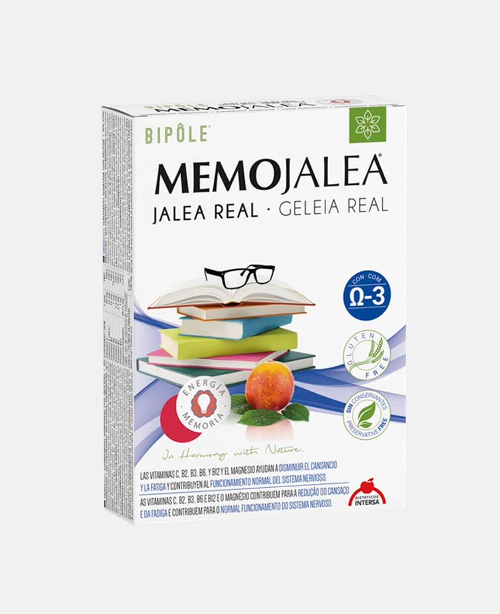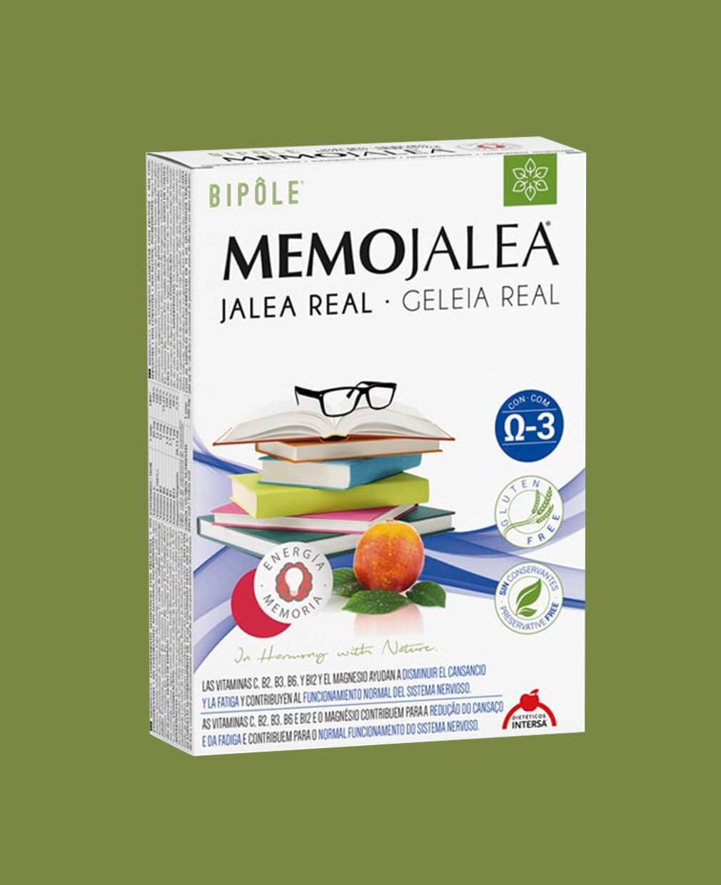 MEMO JALEA es un complemento alimenticio especialmente indicado en época de fuerte actividad intelectual, exámenes, largas sesiones de estudio, falta de concentración, estrés y falta de energía y vitalidad asociada a un exceso de trabajo mental.