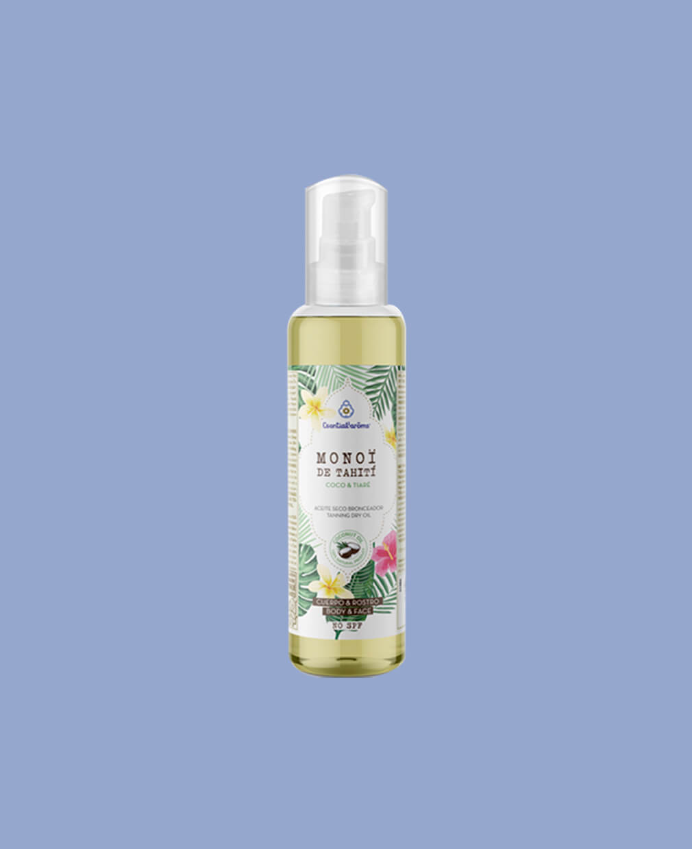 Este es un producto tradicional de la Polinesia: una combinación del monoi de tahití (que es la maceración de las flores de Tiaré) y aceite vegetal de coco que resulta súper hidratante para la piel.