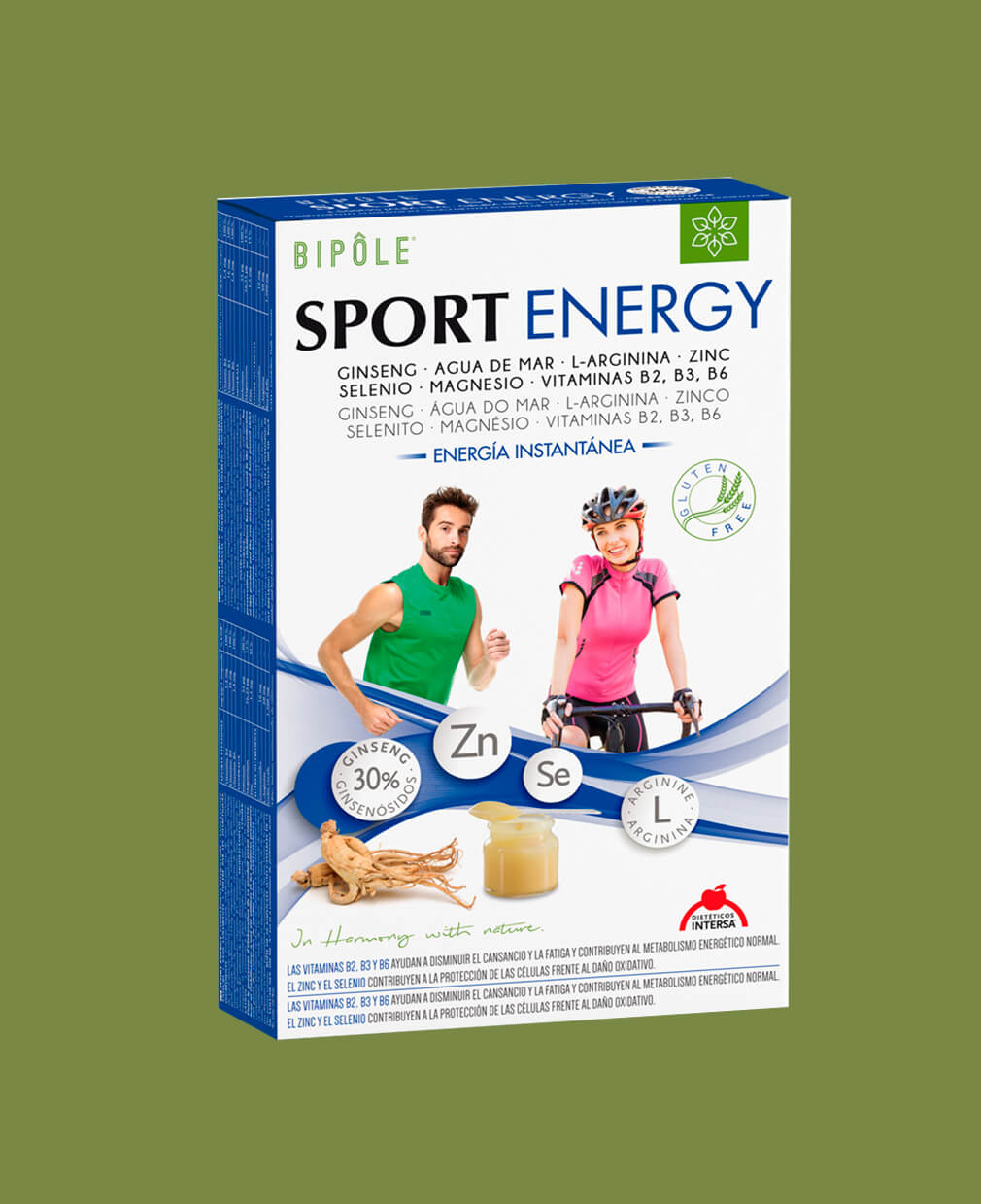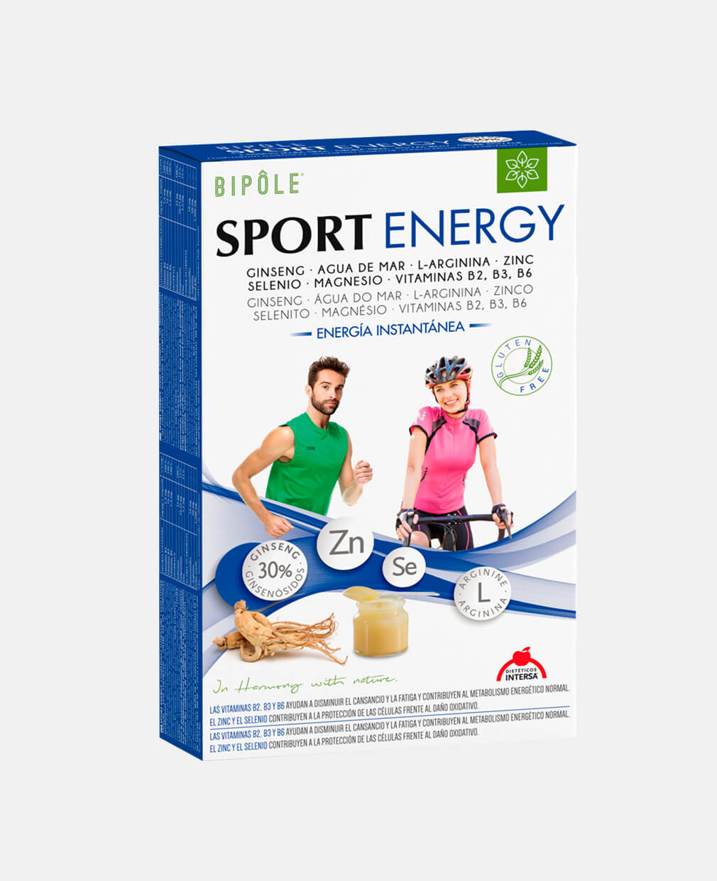 SPORT ENERGY une las propiedades energéticas y reconstituyentes de la jalea real pura, el ginseng, la L-Arginina y micronutrientes esenciales que actúan tonificando el sistema nervioso, optimizando el metabolismo energético, facilitando la eliminación de deshechos orgánicos y frenando el proceso de oxidación celular.